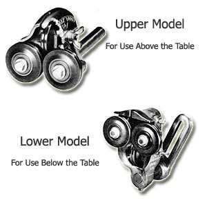 Loading... Please wait...Model #20 guides can be installed on any machine having at least 2-1/2" from back of blade to top guide post, and from back of blade to frame below table and will support blades from 1/4" to 2" wide. For 2" blade simply remove and reverse the center assembly. Do no remove the wheel from slides. Ball bearing guide wheels are 2-1/4" O.D.